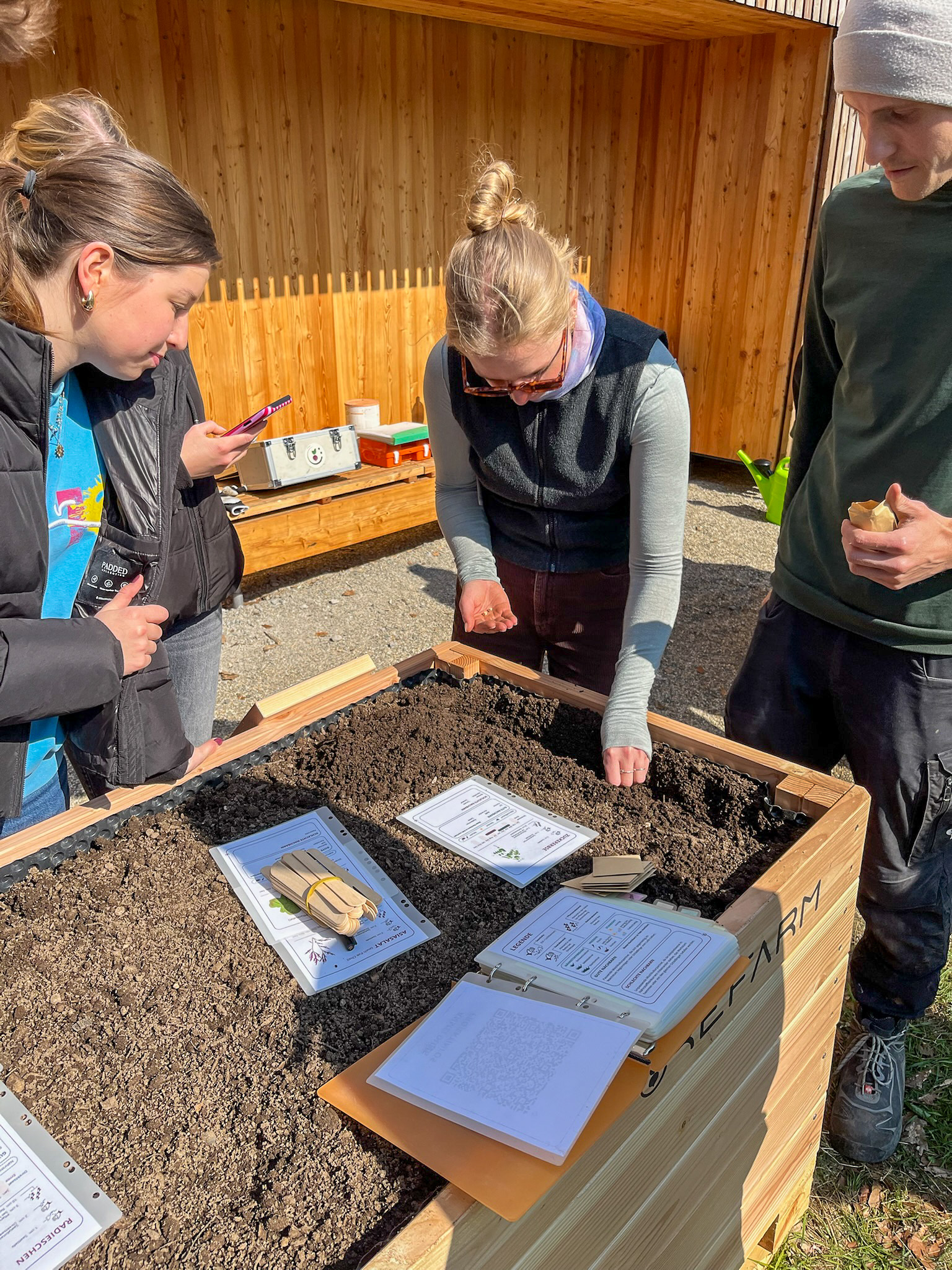 Unter Anleitung des Refarm-Teams wurden die Hochbeete an der Knielinger-Allee am E-Bike-Port der Hochschule Karlsruhe aufgebaut. In einer gemeinsamen Aktion mit Studierenden und Mitarbeitenden wurden die Beete montiert, befüllt und bepflanzt. Dabei wurden rund 2.000 Liter Material bewegt. Der praktische Einsatz wurde durch Schulungen zu Themen wie nachhaltiger Anbau, Pflanzkombinationen und Saatgut ergänzt. Insgesamt fanden die Aktionen bei allen großen Anklang.