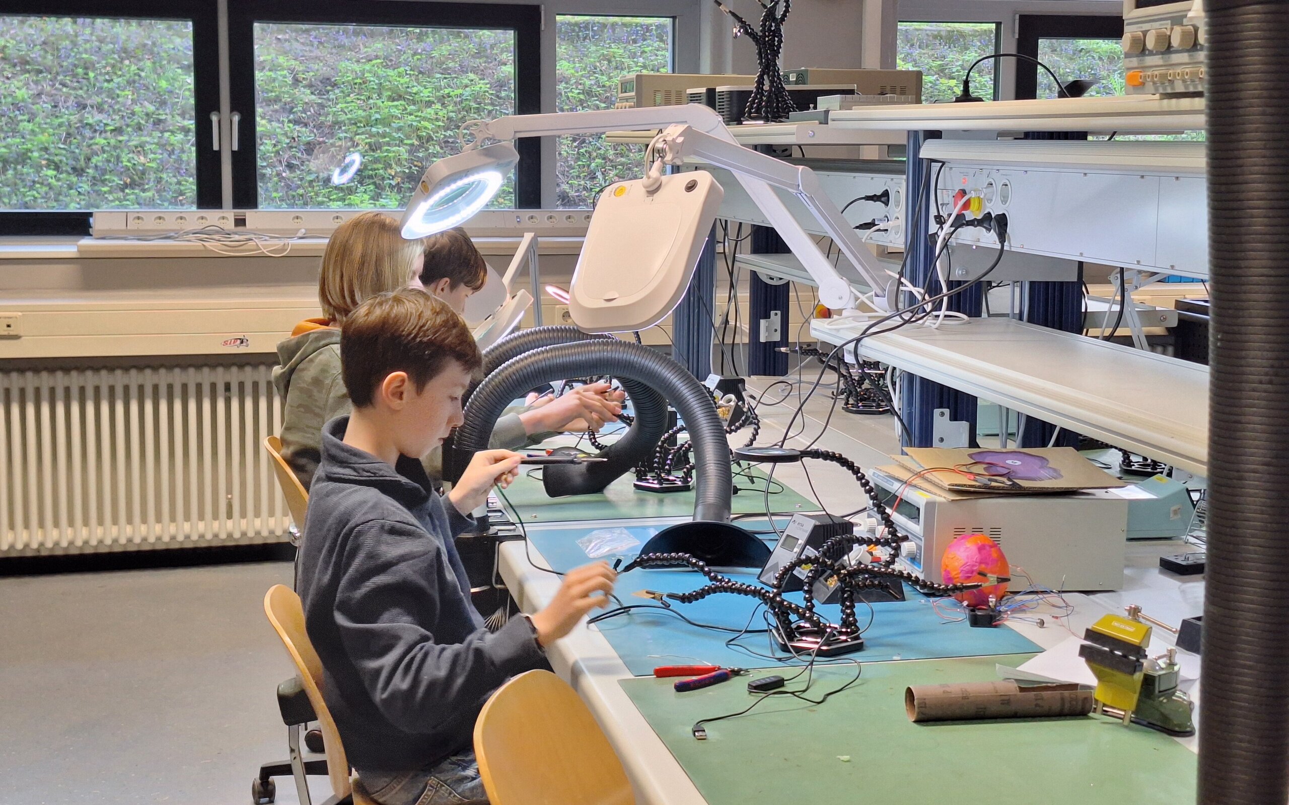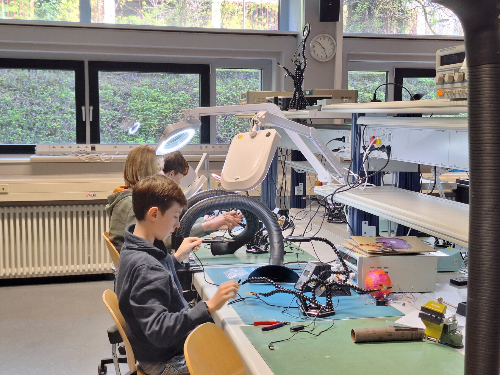 Ein kreativer Gegenpol war das LivingLab der Fakultät für Elektrotechnik und Informationstechnik: Hier konnten die Teilnehmenden frei experimentieren, eigene Ideen umsetzen und erste Erfahrungen im Löten elektronischer Bauteile sammeln. Das offene Arbeiten in einer authentischen Entwicklungsumgebung empfanden die Jugendlichen als besonderes Highlight, da es ihnen zeigte, wie technisches Arbeiten außerhalb des Schulalltags aussieht.