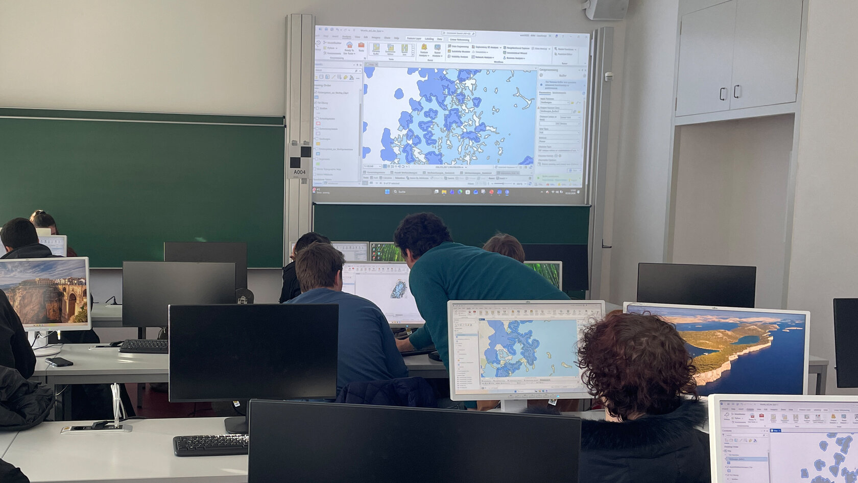 Die zweite Einheit „GIS: Rückzugsräume für Wölfe im Schwarzwald“ widmete sich Geographischen Informationssystemen (GIS). Hier kombinierten die Teilnehmenden verschiedene Kriterien – etwa Abstand zu Siedlungen, Nähe zu Straßen oder geeignete Habitattypen –, um potenzielle Rückzugsräume zu kartieren und diese mit dokumentierten Sichtungen zu evaluieren.