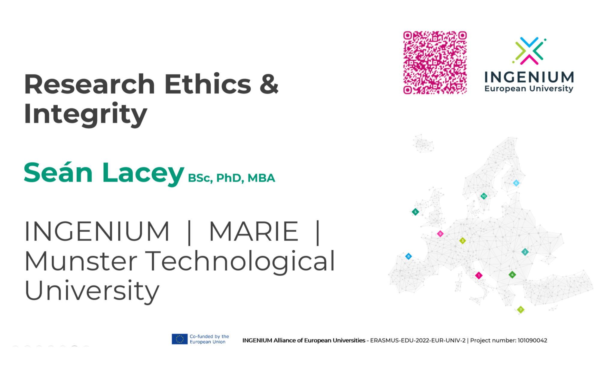 Geleitet wird das Modul von Dr. Seán Lacey, Research Integrity & Compliance Officer an der Munster Technological University und Principal Investigator des Projekts MARIE – Multidisciplinary Approach to Research Integrity & Ethics, einem INGENIUM-Projekt, das vom INGENIUM Research School Board unterstützt wird.