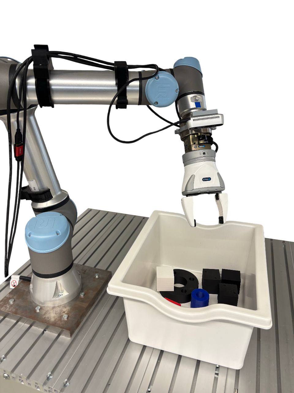 Die zunehmende Automatisierung von Montageprozessen sowie die steigende Produktindividualität erfordern intelligente und autonome Greifsysteme für Industrieroboter. Das Projekt GSAK erforscht hierzu neuartige Greifplanungsstrategien mit besonderem Fokus auf die Handlung, die von Objekten in nachgelagerten Prozessen angeboten werden. Zentrale Grundlage sind sogenannte Affordances, die beschreiben, welche Objektbereiche für spezifische Handlung relevant sind. Dadurch können Greif-Hypothesen stabil und handlungsorientiert generiert werden. Hierfür werden Deep-Learning-basierte Verfahren mit Heuristiken erweitert, die die Generalisierung und Effizienz des Lernens verbessern. Dabei müssen vor allem Strategien entwickelt werden, die das Greifen auch in komplexen und beengten Szenarien erlauben, in denen zur erfolgreichen Erfüllung der Aufgabe, Kollisionen mit benachbarten Objekten erforderlich sind.