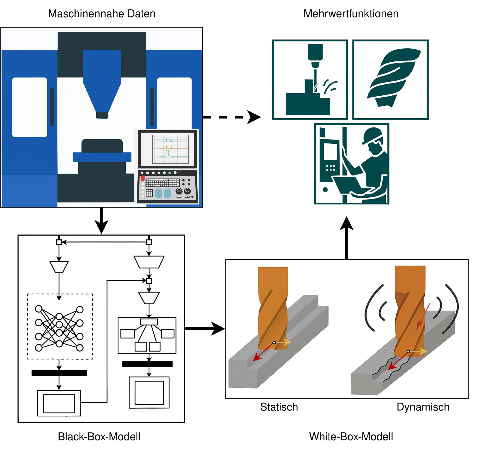 Der hybride Ansatz aus KI und Physik steigert die Dateneffizienz, die Generalisierbarkeit und die Interpretierbarkeit. Ein besonderer Fokus liegt darauf, Modelle zu entwickeln, die mit vorhandenen Werkzeugmaschinendaten und Metadaten trainiert werden. So entsteht nicht nur eine Lösung für einzelne Anwendungen, sondern es wird ein umfassendes Verständnis von Maschinen und Prozessen erreicht.
